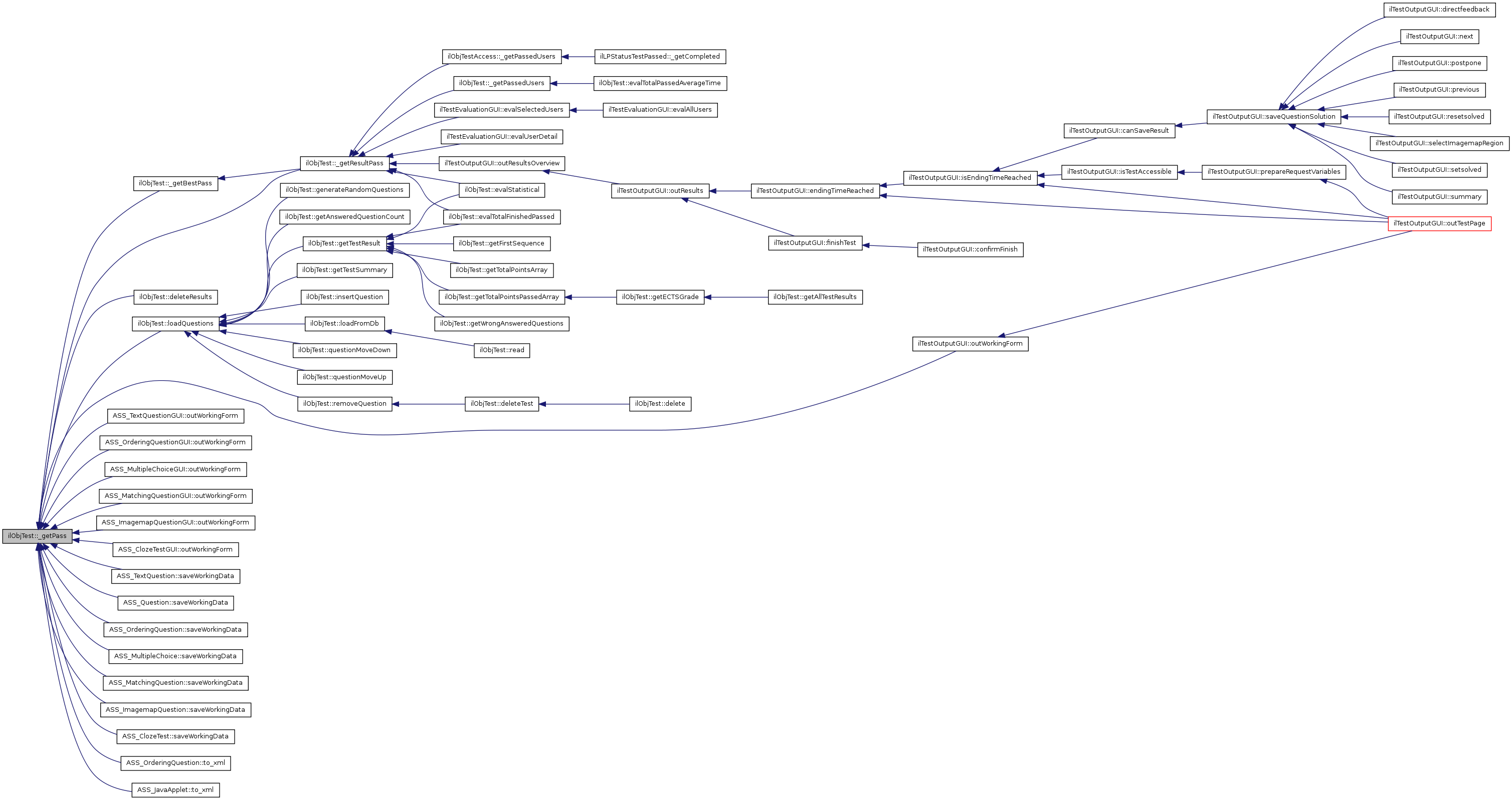 Referenced by _getActiveTestUser(), _getBestPass(), _getCountSystem(), _getHidePreviousResults(), _getHideTitlePoints(), _getMCScoring(), _getObjectIDFromTestID(), _getPass(), _getPassedUsers(), _getPassScoring(), _getQuestionCount(), _getResultPass(), _getTestIDFromObjectID(), _getTestType(), and getPassFinishDate().