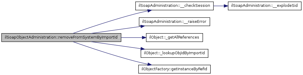 Here is the call graph for this function:| ilSoapObjectAdministration::removeFromSystemByImportId | ( | $ | sid, | |