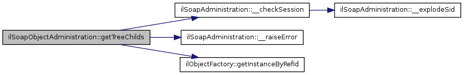 Here is the call graph for this function:| ilSoapObjectAdministration::getTreeChilds | ( | $ | sid, | |