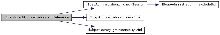 Here is the call graph for this function:| ilSoapObjectAdministration::addReference | ( | $ | sid, | |