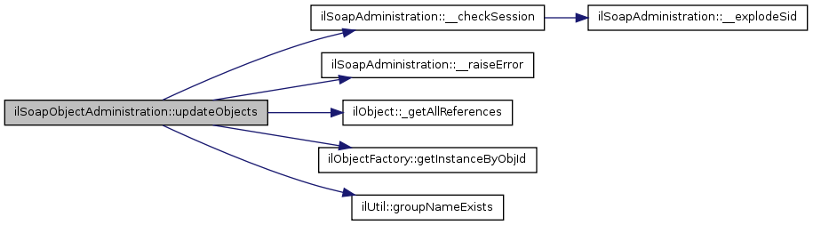 Here is the call graph for this function:| ilSoapObjectAdministration::updateObjects | ( | $ | sid, | |