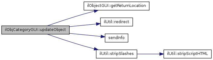 Here is the call graph for this function:| ilObjCategoryGUI::updateObject | ( | ) |