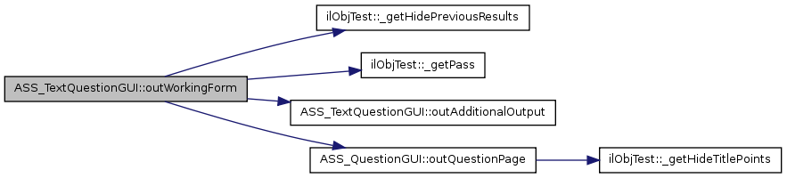 Here is the caller graph for this function:| ASS_TextQuestionGUI::outWorkingForm | ( | $ | test_id = "", |