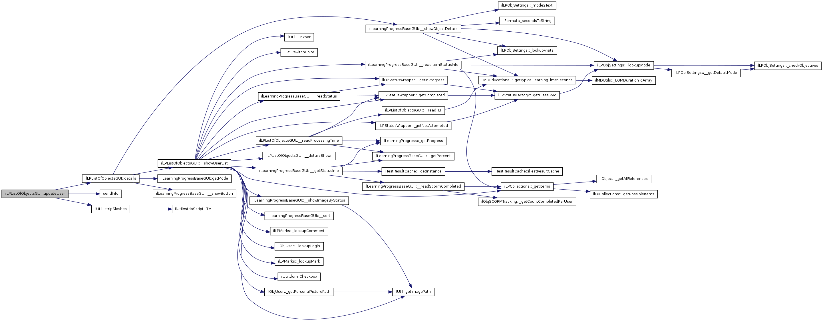 Here is the call graph for this function:| ilLPListOfObjectsGUI::updateUser | ( | ) |