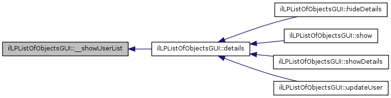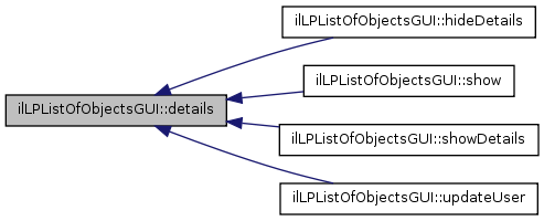 Here is the caller graph for this function:| ilLPListOfObjectsGUI::details | ( | ) |