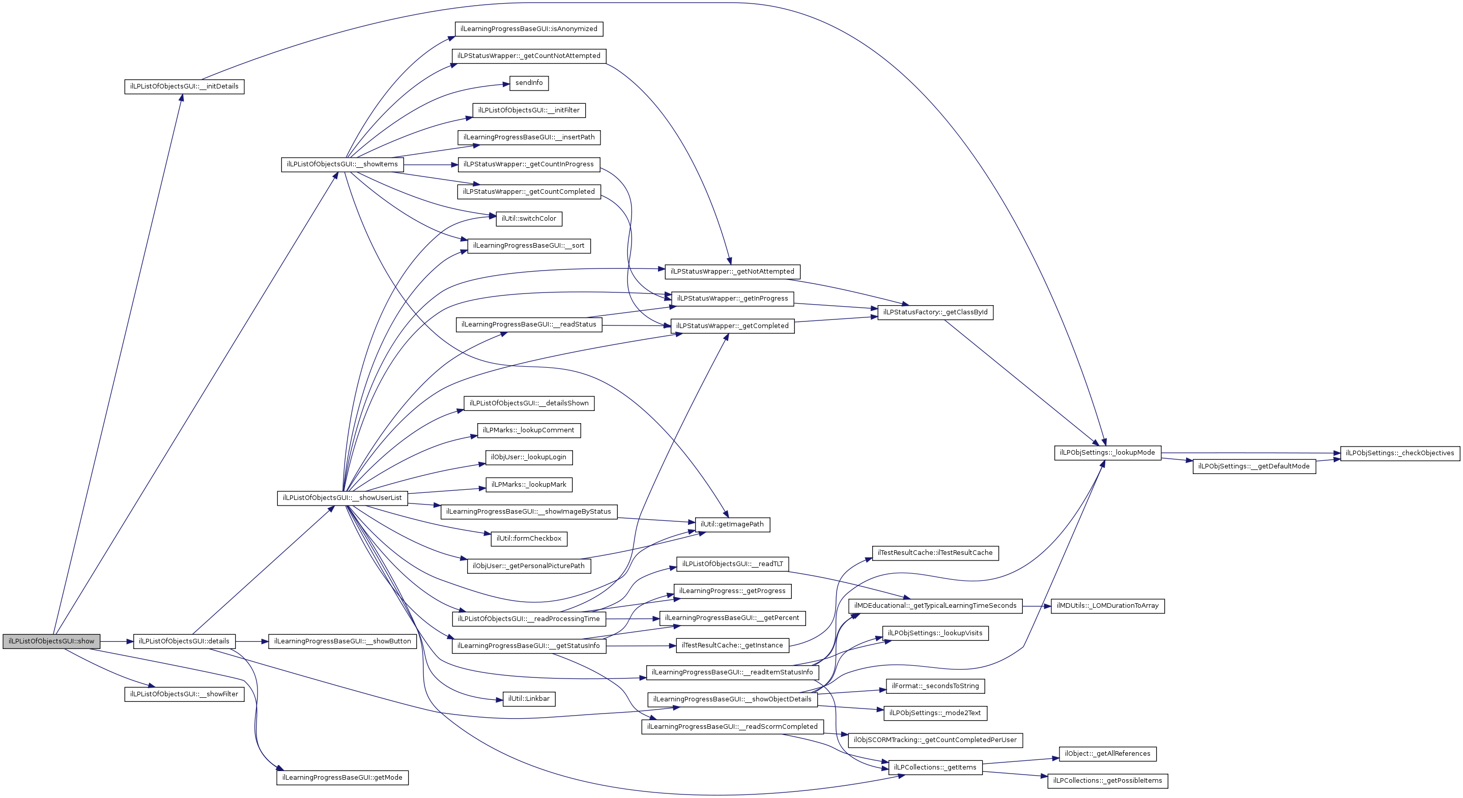 Here is the call graph for this function:| ilLPListOfObjectsGUI::show | ( | ) |