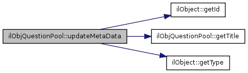 Here is the call graph for this function:| ilObjQuestionPool::updateMetaData | ( | ) |