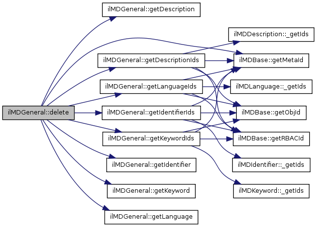 Here is the call graph for this function:| ilMDGeneral::delete | ( | ) |