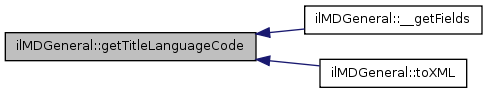 Here is the caller graph for this function:| ilMDGeneral::getTitleLanguageCode | ( | ) |