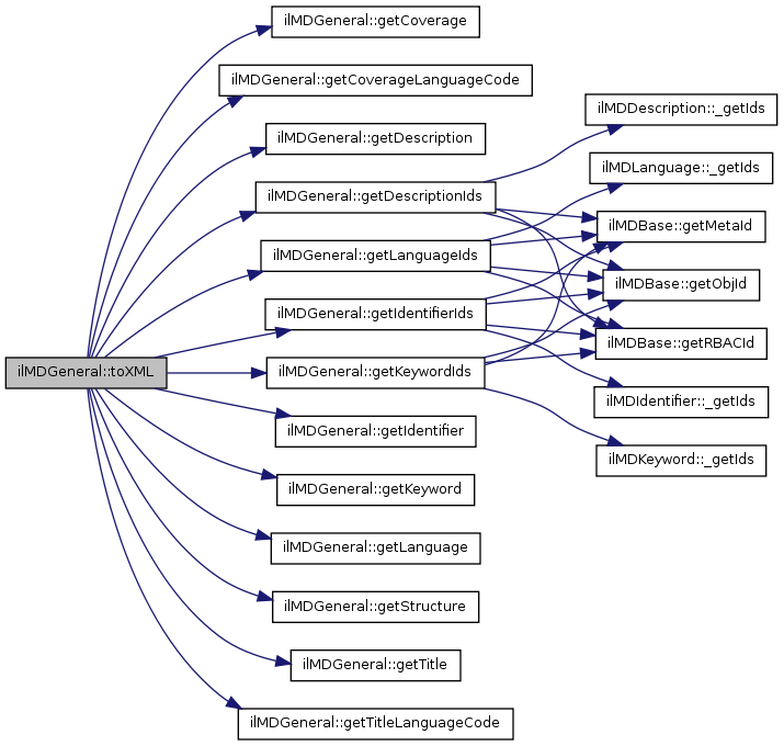 Here is the call graph for this function:| ilMDGeneral::toXML | ( | &$ | writer | ) |