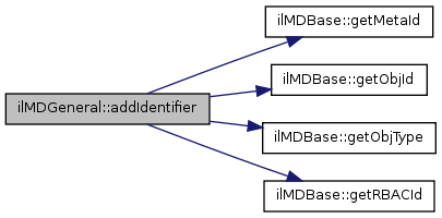 Here is the call graph for this function:| & ilMDGeneral::addIdentifier | ( | ) |