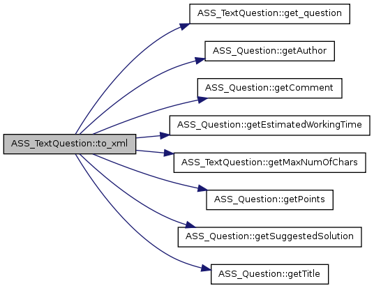 Here is the call graph for this function:| ASS_TextQuestion::to_xml | ( | $ | a_include_header = true, |