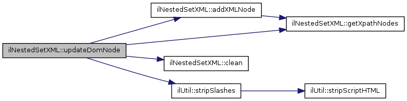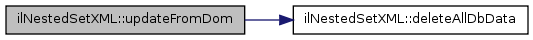Here is the call graph for this function:| ilNestedSetXML::updateFromDom | ( | ) |