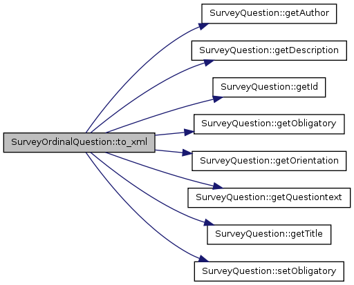 Here is the call graph for this function:| SurveyOrdinalQuestion::to_xml | ( | $ | a_include_header = true, |