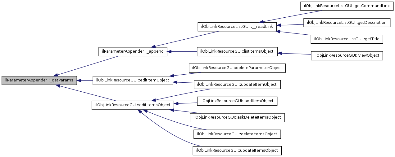 Here is the caller graph for this function:| ilParameterAppender::_getParams | ( | $ | a_link_id | ) |