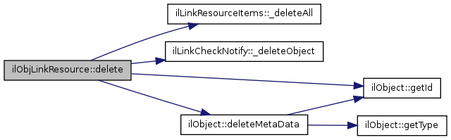 Here is the call graph for this function:| ilObjLinkResource::delete | ( | ) |
