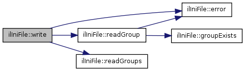 Here is the call graph for this function:| ilIniFile::write | ( | ) |