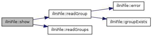 Here is the call graph for this function:| ilIniFile::show | ( | ) |