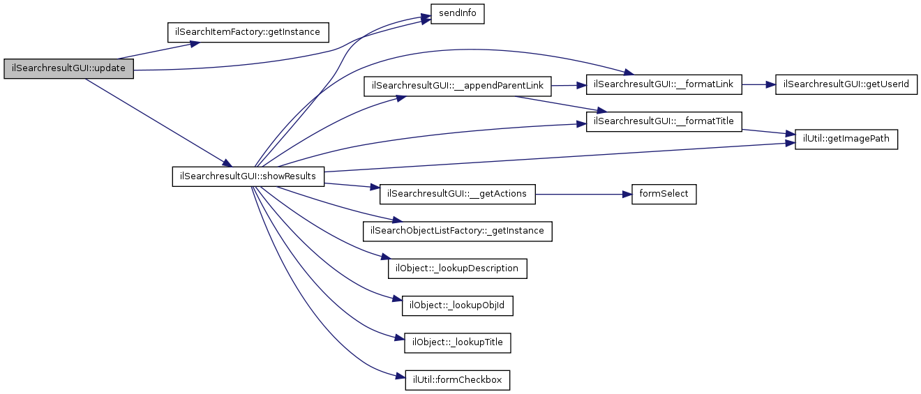 Here is the caller graph for this function:| ilSearchresultGUI::update | ( | ) |