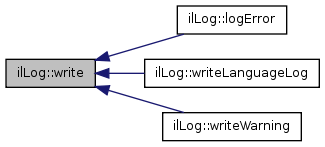 Here is the call graph for this function:| ilLog::writeWarning | ( | $ | a_message | ) |