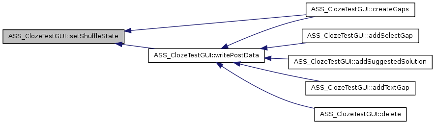 Here is the caller graph for this function:| ASS_ClozeTestGUI::setShuffleState | ( | ) |
