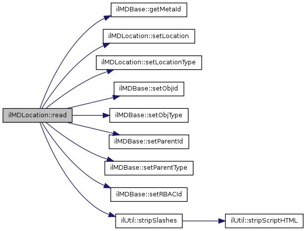 Here is the call graph for this function:| ilMDLocation::read | ( | ) |