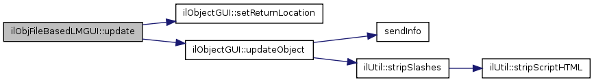 Here is the call graph for this function:| ilObjFileBasedLMGUI::update | ( | ) |