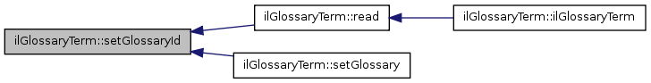 Here is the call graph for this function:| ilGlossaryTerm::setGlossaryId | ( | $ | a_glo_id | ) |