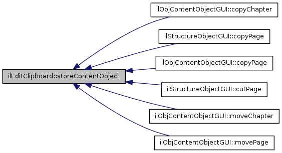 Here is the caller graph for this function:| ilEditClipboard::storeContentObject | ( | $ | a_type, | |