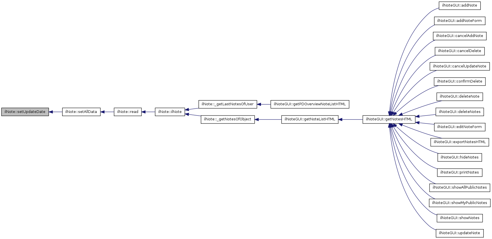 Here is the caller graph for this function:| ilNote::setUpdateDate | ( | $ | a_date | ) |