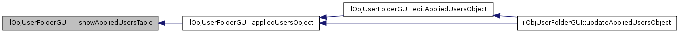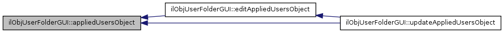 Here is the caller graph for this function:| ilObjUserFolderGUI::updateAppliedUsersObject | ( | ) |
