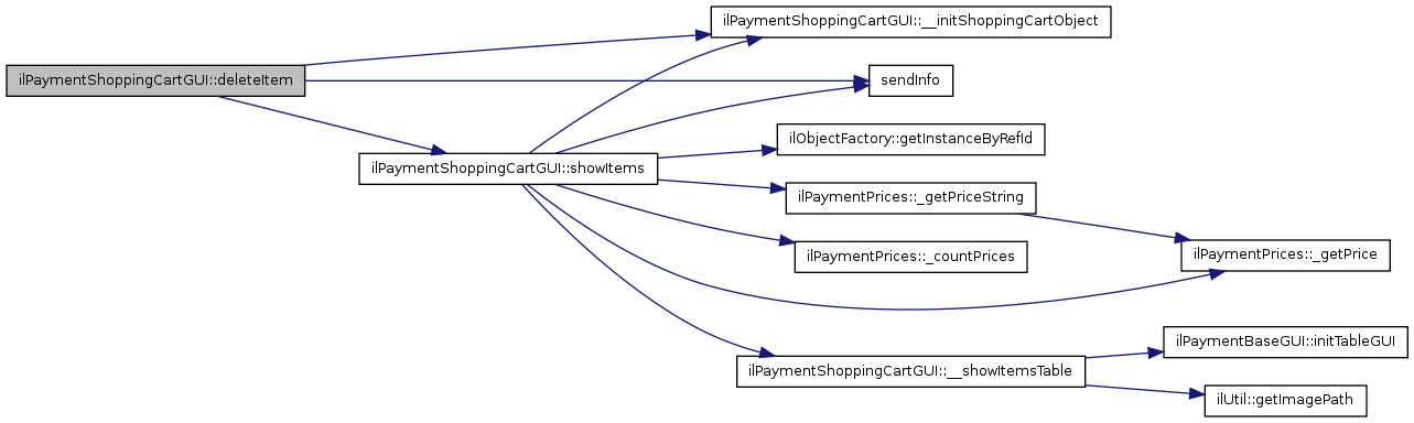 Here is the caller graph for this function:| ilPaymentShoppingCartGUI::deleteItem | ( | ) |