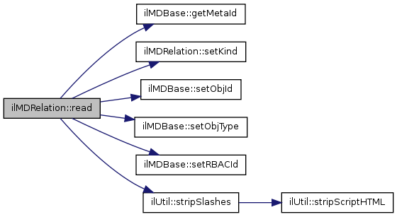 Here is the call graph for this function:| ilMDRelation::read | ( | ) |