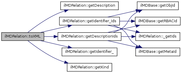 Here is the call graph for this function:| ilMDRelation::toXML | ( | &$ | writer | ) |