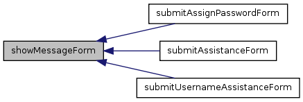 Here is the caller graph for this function:| showAssignPasswordForm | ( | $ | message = "", |