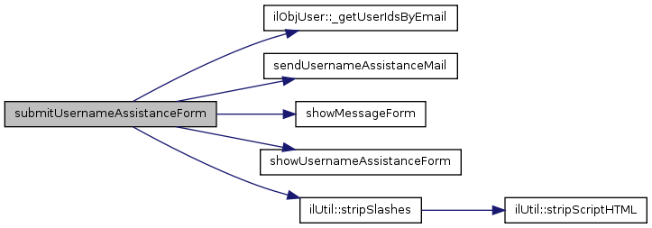 Here is the call graph for this function:| submitUsernameAssistanceForm | ( | ) |