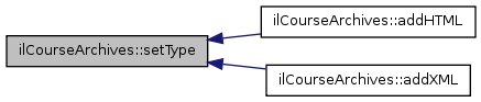 Here is the caller graph for this function:| ilCourseArchives::setType | ( | $ | a_type | ) |