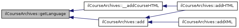 Here is the caller graph for this function:| ilCourseArchives::getLanguage | ( | ) |