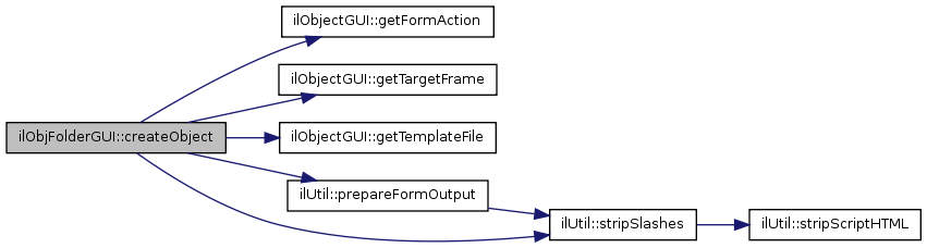 Here is the call graph for this function:| ilObjFolderGUI::createObject | ( | ) |