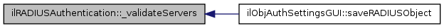 Here is the caller graph for this function:| ilRADIUSAuthentication::_validateServers | ( | $ | a_servers | ) |