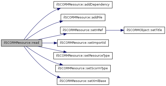 Here is the call graph for this function:| ilSCORMResource::read | ( | ) |