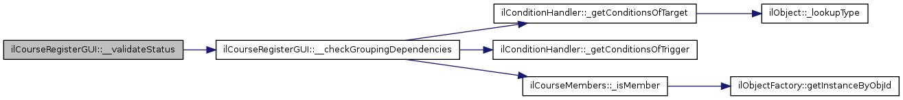 Here is the caller graph for this function:| ilCourseRegisterGUI::__validateStatus | ( | ) |