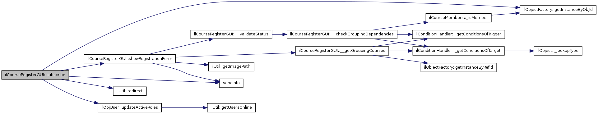 Here is the caller graph for this function:| ilCourseRegisterGUI::subscribe | ( | ) |