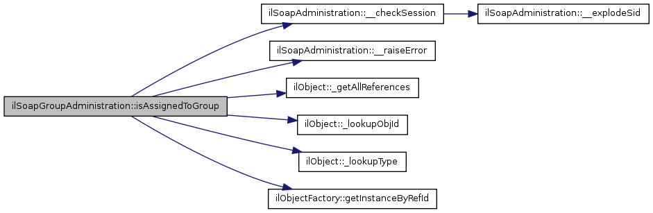 Here is the call graph for this function:| ilSoapGroupAdministration::isAssignedToGroup | ( | $ | sid, | |