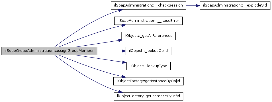 Here is the call graph for this function:| ilSoapGroupAdministration::assignGroupMember | ( | $ | sid, | |