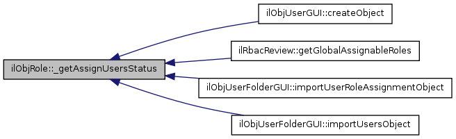 Here is the caller graph for this function:| ilObjRole::getAssignUsersStatus | ( | ) |