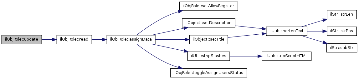Here is the caller graph for this function:| ilObjRole::update | ( | ) |