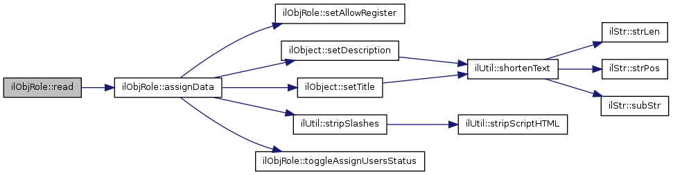 Here is the call graph for this function:| ilObjRole::read | ( | ) |