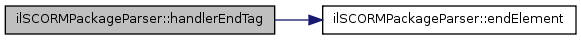 Here is the call graph for this function:| ilSCORMPackageParser::handlerEndTag | ( | $ | a_xml_parser, | |