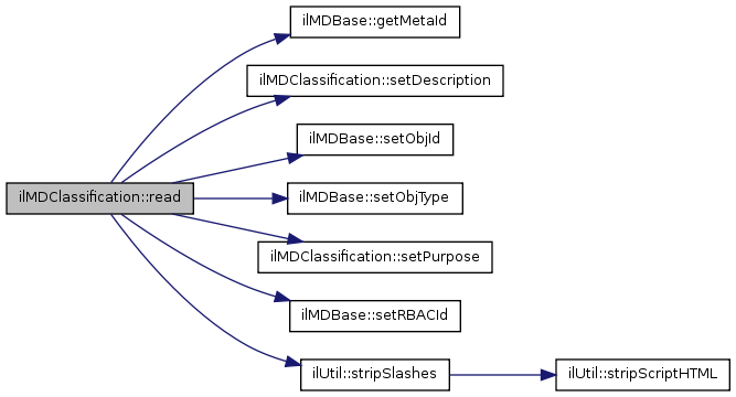 Here is the call graph for this function:| ilMDClassification::read | ( | ) |